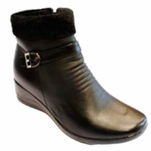 Bottines noires en similicuir pour femme, offertes par lot de 12 paires à prix exceptionnel (6.08 € / Unité). Modèle équipé d’une bride et boucle sertie de strass avec semelle compensée antidérapante. Pointure : 36-41. Pour plus d’informations, contactez notre service client au Tél : 09 74 77 14 80 ou envoyez-nous un mail sur cette adresse : contact@ventegros.fr.