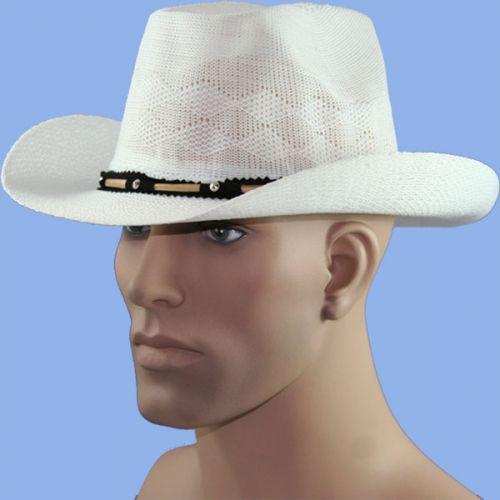 chapeau cowboy en toile blanc avec contour en tissu noir. idéal pour les danseurs de country.