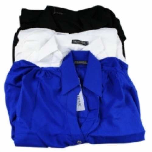 Lot de 3 chemises classiques pour femme de bonne qualité (35% en soie et 60% en polyester), offert à prix défiant toute concurrence sur ventegros.fr (5.00 € / Unité). Modèle équipé des manches 3/4 et boutons devant. Disponible en couleur blanche, verte, taupe. Tailles assorties : L/XL. Pour plus d’informations, contactez notre service client au Tél : 09 74 77 14 80 ou envoyez-nous un mail sur cette adresse : contact@ventegros.fr.