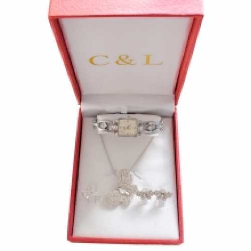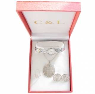 Une large gamme de coffret-cadeau pour femmes est disponible à prix concurrentiel sur ventegros.fr. Profitez de ce lot de 5 coffrets C & L agrémenté de strass comprenant une montre en métal argenté, une bague, un collier à pendentif fantaisie et des boucles d'oreilles assorties (6.75 € / Unité). Dimension : 15.5 x 11.5 cm. Couleurs assorties. Pour plus d’informations, contactez notre service client au Tél : 09 74 77 14 80 ou envoyez-nous un mail sur cette adresse : contact@ventegros.fr.