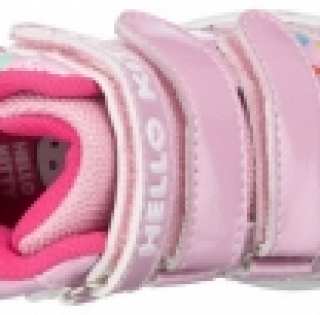 Lot de 12 paires de baskets roses Hello Kitty de premier cuir avec montant rembourré et motif animé, offert à prix exceptionnel sur ventegros.fr (8.75 € / Unité). Modèle équipé de trois bandes velcros sur la languette et monté sur une semelle en élastomère avec biais contrastant. Pointures assorties : 20-27. Pour plus d’informations, contactez notre service client au Tél : 09 74 77 14 80 ou envoyez-nous un mail sur cette adresse : contact@ventegros.fr.