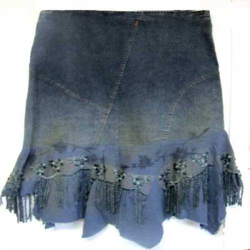 Jupe en jean avec petits volants en bas de jupes et broderie ornée de perles