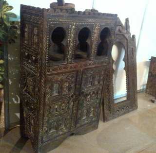 Porte/portail de maison ou de villas, orné de gravures et motifs berbères antiques. Vernissage/cirage accompli / Type de bois : Noyer