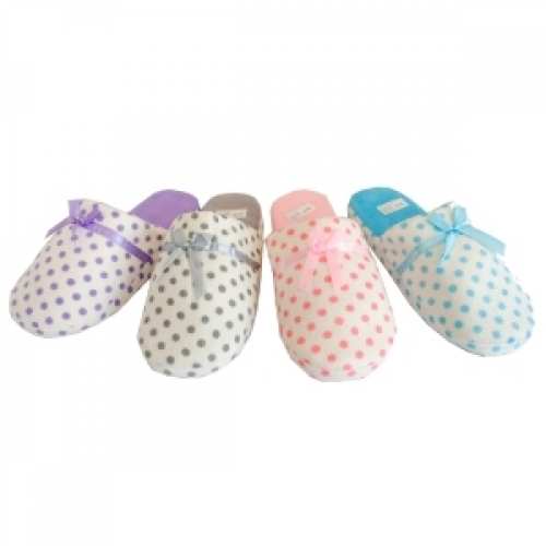 Lot de 48 paires de pantoufle à pois pas cher pour femme, disponible en couleurs assorties sur ventegros.fr (1.62 € / Unité). Modèle orné d’un petit nœud dessus et doté d’une semelle antidérapante. Pointure : 36-41. Pour plus d’informations, contactez notre service client au Tél : 09 74 77 14 80 ou envoyez-nous un mail sur cette adresse : contact@ventegros.fr.