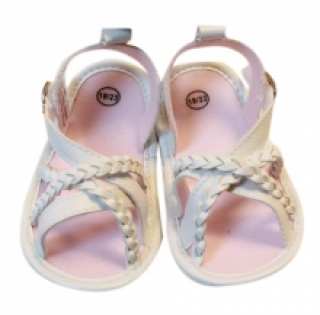 Ravissantes sandales avec brides croisées et tressées à bas prix pour vos fillettes (4.05 € / unité). Disponible en couleurs assorties et en trois tailles 6/12, 12/18 et 18/23.