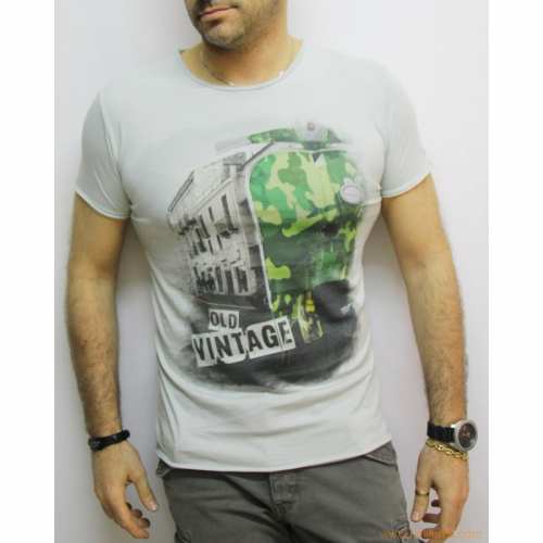 Tee shirt à manches courtes, imprimé sur la poitrine.