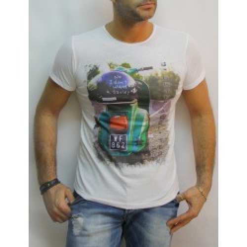 Tee shirt à manches courtes, imprimé sur la poitrine.