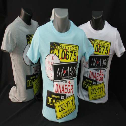 Tee-shirt aux manches courtes, col rond, superbe sérigraphie sur la poitrine de plaque d’immatriculation américaine aux couleurs vifs. Très beau tee shirt tendance pour les ados et autre Fashion victime ! Model existant en blanc, noir, gris et turquoise.