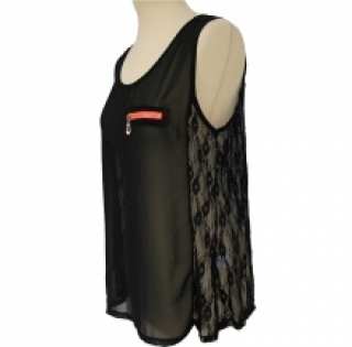 Ventegros.fr vous offre à mini-prix ce lot de 12 tops équipé d’une poche poitrine zippée et empiècement en dentelle au dos (5.40 € / Unité). Top conçu en polyester. Couleurs assorties : noir, blanc, rose, bleu. Tailles : S/M, M/L. Pour plus d’informations, contactez notre service client au Tél : 09 74 77 14 80 ou envoyez-nous un mail sur cette adresse : contact@ventegros.fr.