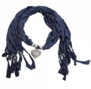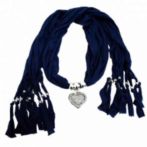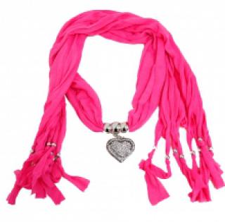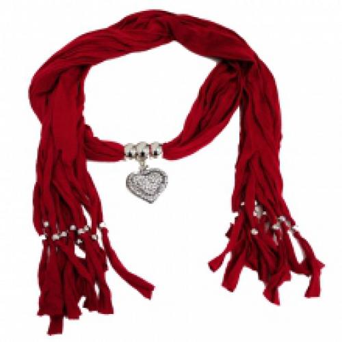Écharpe bijou avec pendentif cœur strass et bordure franges à perles