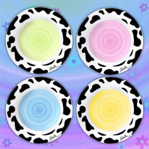 Assiette dookie la vache 4 pieces , matière : céramique , 4 couleurs assorties , dimension : 28, 5cm