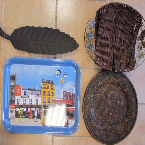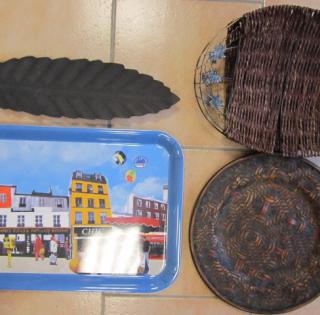 12 Petits plats à tajine, 1 Plateau repas, 1 Plat tressé, 2 Plateaux tressés déco, 10 Plats feuille en fer, 55 Ramequins X 3,