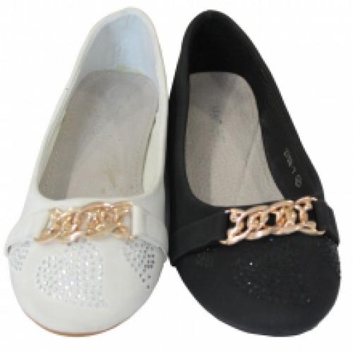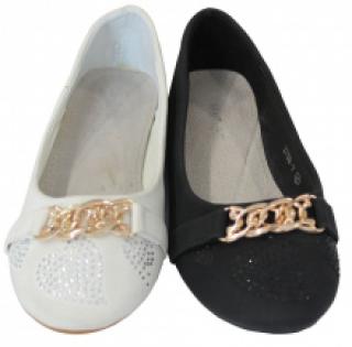 Ballerines avec bout décoré de cœurs en strass et chaîne dorée sur le dessus, livrées par lot de 16 paires à prix exceptionnel (5.13 € / Unité). Équipées d’une semelle antidérapante en caoutchouc. Plusieurs coloris disponibles : beige, blanc, noir. Tailles assorties : 25-35. Pour plus d’informations, contactez notre service client au Tél : 09 74 77 14 80 ou envoyez-nous un mail sur cette adresse : contact@ventegros.fr.