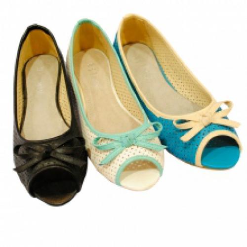 Lot de 12 jolies ballerines perforées pas cher avec bordure et nœud lacet en contraste de couleur sur le bout ouvert (5.13 € / Unité). Ballerines fabriquées en polyuréthane, équipées semelle d'usure antidérapant en caoutchouc. Pointures assorties : 36-41. Coloris disponible en black, white, beige et bleu. Pour plus d’informations, contactez notre service client au Tél : 0974771480 ou envoyez-nous un mail sur cette adresse : contact@ventegros.fr.