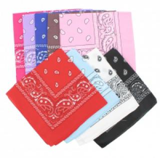 Joli bandana idéal pour apporter un look décontracté et branché, vendu par lot de 12 pièces à petits prix sur ventegros.fr (0.67 € / Unité). Bandana imprimé fantaisie d'une taille de 54 x 54 cm. Fabriqué entièrement en polyester. Une variété de couleurs à choisir : noir, blanc, bleu ciel, rouge, rose, marron, fuchsia, bleu royal, lilas. Pour plus d’informations, contactez notre service client au Tél : 09 74 77 14 80 ou envoyez-nous un mail sur cette adresse : contact@ventegros.fr.