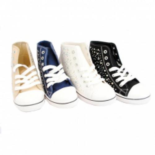 Lot de 12 baskets compensées cloutées pour femme, vendu à petit prix (8.50 € / Unité). Baskets dotées d'un système de laçage devant, semelle en élastomère avec liseré noir. Disponibles en couleurs : noir, blanc, beige, rose et bleu. Tailles existantes : 36-41. Pour plus d’information, contactez notre service client au Tél : 0974771480 ou envoyez-nous un mail sur cette adresse : contact@ventegros.fr.