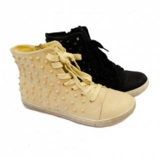 Profitez de ce lot de 12 paires de baskets montantes agrémentées de clous nacrés. Baskets pas cher (6.75 € / Unité), équipées d’un système de laçage devant et zip sur le côté. Modèle façonné en polyuréthane et monté sur une semelle d’usure en élastomère. Pointures assorties : 36-41. Lot disponible en couleur : black, beige et camel. Pour plus d’informations, contactez notre service client au Tél : 0974771480 ou envoyez-nous un mail sur cette adresse : contact@ventegros.fr.