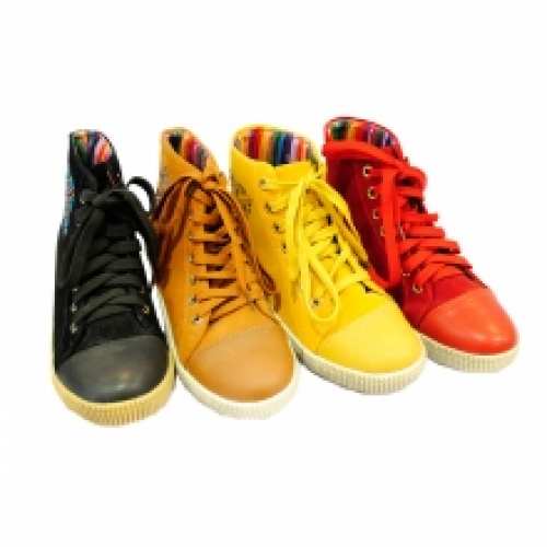 Baskets montantes cloutées Union Jack sur le côté avec un système de laçage devant et doublure à rayure multicolore, vendues par lot de 12 paires à prix compétitif (6.75 € / Unité). Modèle façonné en polyuréthane et monté sur une semelle d’usure en gomme antidérapante. Pointures assorties : 36-41. Plusieurs coloris disponibles : black, red, yellow, green et camel. Pour plus d’informations, contactez notre service client au Tél : 0974771480 ou envoyez-nous un mail sur cette adresse : contact@ventegros.fr.