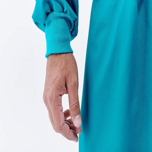 Cette blouse de chirurgie a 100% Coton résistants à très haute température en machine et stérilisable en autoclave.