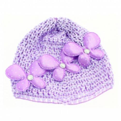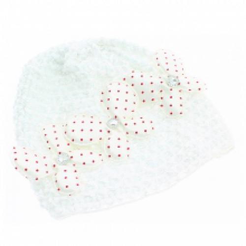 Bonnet bébé orné de papillons à pois et strass