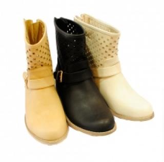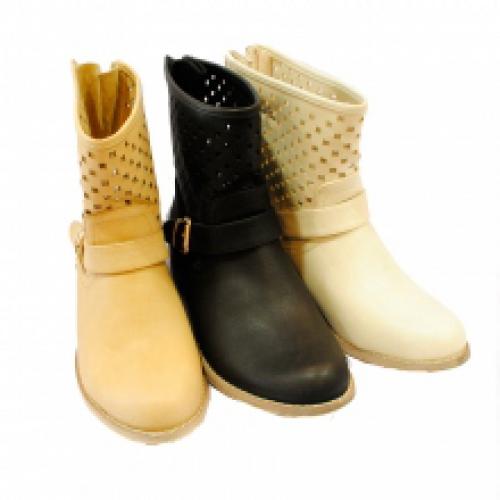 Bottines ultra-tendances avec perforation fantaisie et brides cloutées, livrées par lot de 12 paires à mini-prix (13.50 € / Unité). Bottines conçues en polyuréthane, équipées d’une semelle antidérapante. Pointures assorties : 36-41. Différentes couleurs au choix : black, white, beige et khaki. Pour plus d’informations, contactez notre service client au Tél : 0974771480 ou envoyez-nous un mail sur cette adresse : contact@ventegros.fr.