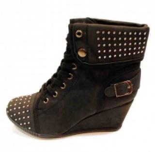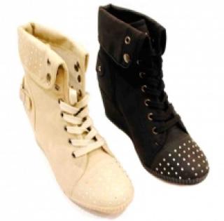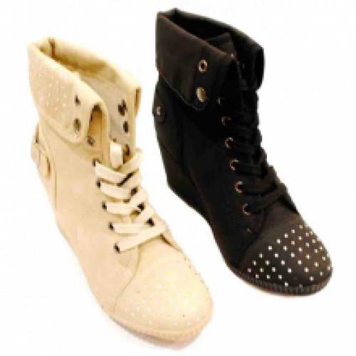 Les chaussures démarquant et ultras tendances pour accessoiriser votre tenue se ressemblent sans doute à cette sublime paire de bottines compensées cloutées avec lacet. Un prix incroyable à profiter pour le lot de 12 paires de ces bottines (6.75 € / Unité). Pointures assorties : 36-41. Coloris existant en noir, beige. Fabriquées entièrement en similicuir. Pour plus d’informations, contactez notre service client au Tél : 09 74 77 14 80 ou envoyez-nous un mail sur cette adresse : contact@ventegros.fr.