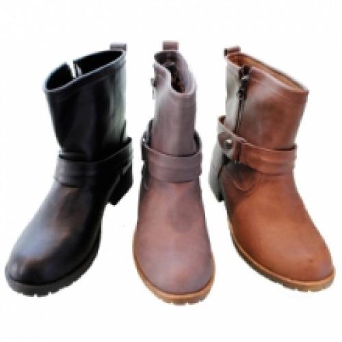 Jolies bottines pour femme avec bride bouclée et zip côté, vendues par lot de 12 paires à prix discount sur ventegros.fr (10.80 € / Unité). Bottines en similicuir, équipées d’une semelle antidérapante. Pointures assorties : 36-41. Couleurs : noir, taupe, camel. Pour plus d’informations, contactez notre service client au Tél : 09 74 77 14 80 ou envoyez-nous un mail sur cette adresse : contact@ventegros.fr.
