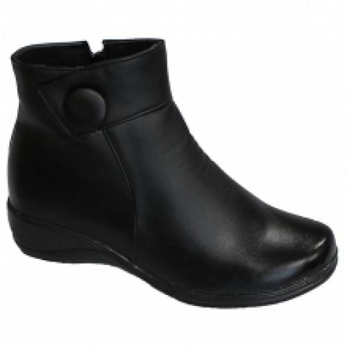 Bottines femme décorées de bouton avec zip côté, offertes par lot de 12 paires à prix compétitif sur ventegros.fr (5.80 € / Unité). Équipées d’une semelle légèrement compensée en caoutchouc antidérapant. Couleur existante en noir. Pointures : 36-41. Pour plus d’informations, contactez notre service client au Tél : 09 74 77 14 80 ou envoyez-nous un mail sur cette adresse : contact@ventegros.fr.