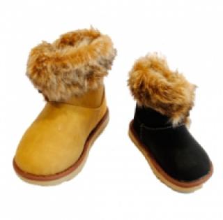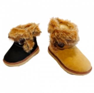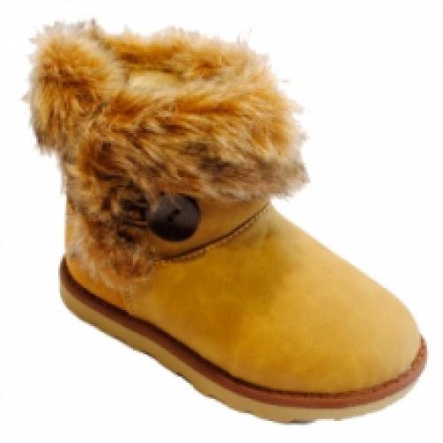 Bottines fourrées pour enfant avec bouton à cordelette sur le côté