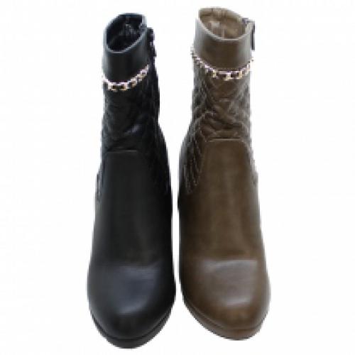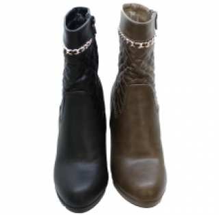Adorables bottines avec montant matelassé doté de chaîne dorée sur le haut. Talon aiguille avec une petite plateforme. Un prix dégressif pour le lot de 12 paires de ce modèle sur ventegros.fr (14.85 € / Unité). Couleurs assorties : noir, taupe foncée. Pointures : 36, 37x2, 38x3, 39x3, 40x2, 41. Pour plus d’informations, contactez notre service client au Tél : 09 74 77 14 80 ou envoyez-nous un mail sur cette adresse : contact@ventegros.fr.