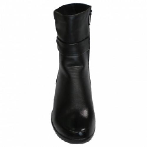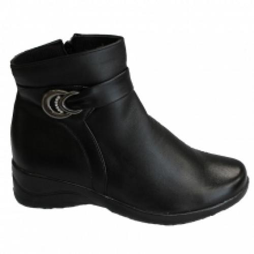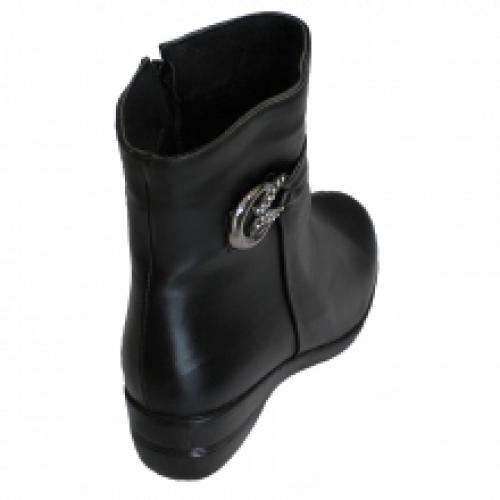 Bottines montantes avec bride bouclée décorée de strass et zip côté