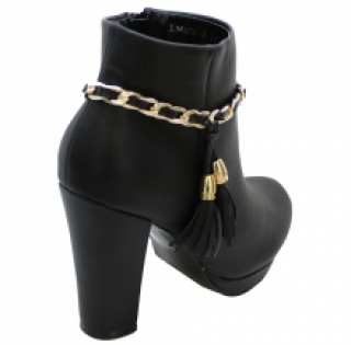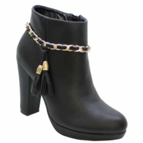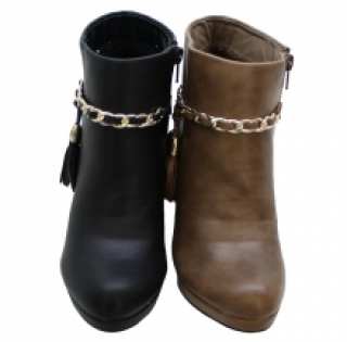 Cette paire de bottines est façonnée spécialement pour embellir votre tenue dans toutes les conjonctures. Bottines à talon haut carré et une petite plateforme, accentuées de chaînes dorées avec pompons. Le lot de 12 paires est offert à petits prix sur ventegros.fr (13.50 € / Unité). Couleurs assorties : noir, marron. Tailles : 36, 37x2, 38x3, 39x3, 40x2, 41. Pour plus d’informations, contactez notre service client au Tél : 09 74 77 14 80 ou envoyez-nous un mail sur cette adresse : contact@ventegros.fr.