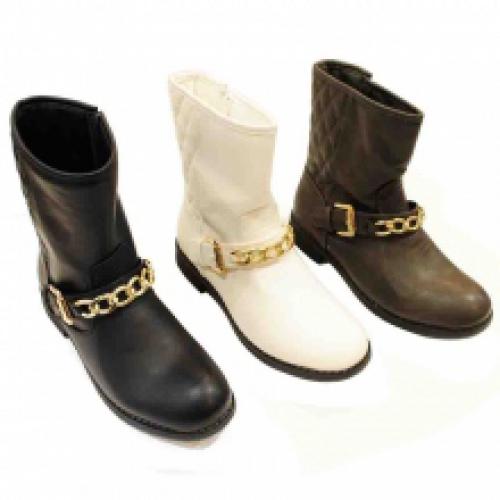 On mise immédiatement sur cette splendide paire de bottines avec bride ornée de chaîne dorée et boucle sur le côté. Zip sur le côté avec semelle antidérapante. Elles soulignent joliment votre tenue rock'n'roll. Couleurs au choix : noir, blanc, gris. Façonnée en similicuir. Pointures assorties : 36-41. Offertes par lot de 12 paires à prix compétitif (11.47 € / Unité). Pour plus d’informations, contactez notre service client au Tél : 09 74 77 14 80 ou envoyez-nous un mail sur cette adresse : contact@ventegros.fr.