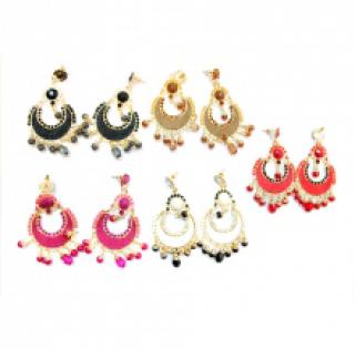 Jolies boucles d’oreilles orientales décorées de perles, vendues par lot de 12 paires à prix compétitif (2.70 € / Unité). Modèle conçu en métal doré. Disponible en couleurs assorties et en taille unique. Pour plus d’informations, contactez notre service client au Tél : 0974771480 ou envoyez-nous un mail sur cette adresse : contact@ventegros.fr.