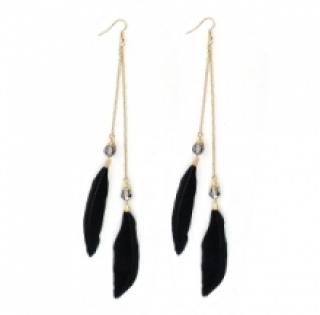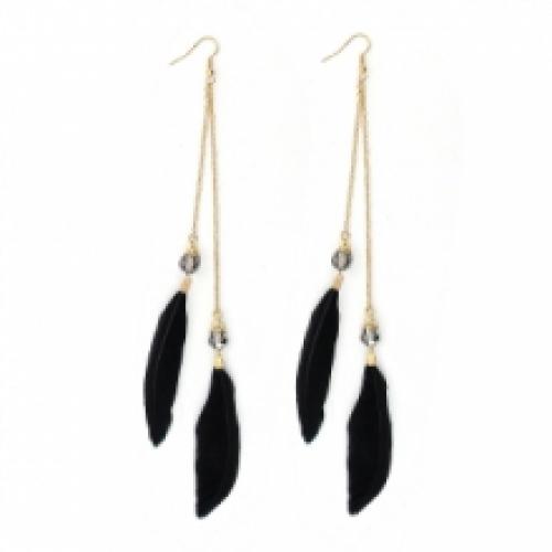 Boucles d’oreilles pendantes en plumes dotées des perles et chaînette