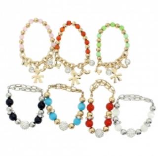 Joli bracelet monté par des perles nacrées, des perles dorées, orné de breloques fantaisie dorée qui assurera toujours la beauté de votre poignet. L'éclat des strass et le miroitement des perles dorées sont à succomber et feront de ce bracelet l'accessoire idéal pour toutes les occasions. Couleurs assorties. Taille : 18 cm. Disponible par lot de 12 pièces à prix abordable (2.02 € / Unité). Pour plus d’informations, contactez notre service client au Tél : 09 74 77 14 80 ou envoyez-nous un mail sur cette adresse : contact@ventegros.fr.