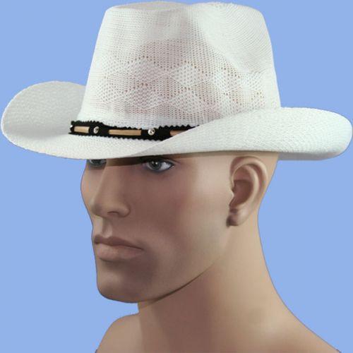 chapeau cowboy en toile blanc avec contour en tissu noir. idéal pour les danseurs de country.