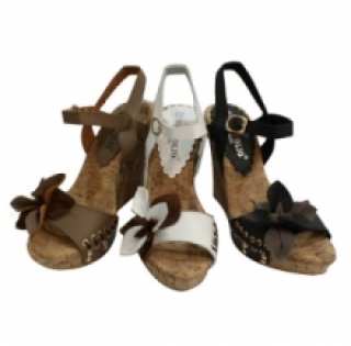 Jolie chaussure compensée cloutée ornée de fleur et œillets à cordon, offerte par lot de 12 paires à petit prix (6.50 € / Unité). Modèle conçu en similicuir, équipé d’un fermoir par bride croisée et boucle ajustable. Dotée d’une semelle d’usure en caoutchouc antidérapante et d’un talon en liège. Plusieurs coloris disponibles : off white, fushia, khaki, black et white. Tailles : 36-41. Pour plus d’informations, contactez notre service client au Tél : 0974771480 ou envoyez-nous un mail sur cette adresse : contact@ventegros.fr.