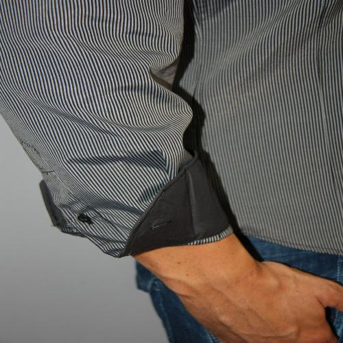 Très belle chemise Classique Gris Anthracite ,fine rayure noire à manches longues.
