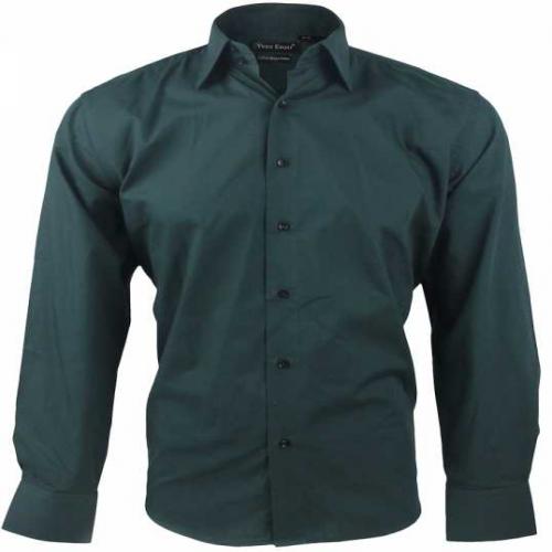 Chemise coupe classique, col italien, unie avec bouton noir.
