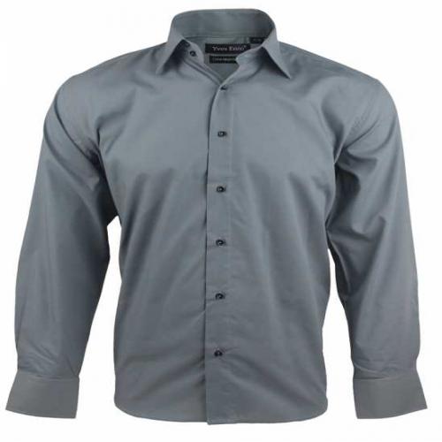 Chemise coupe classique, col italien, unie avec bouton noir.