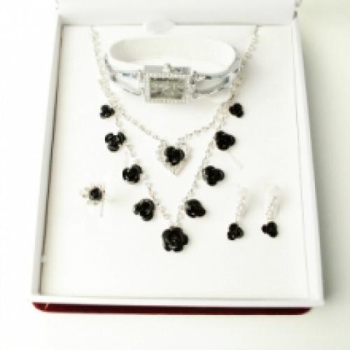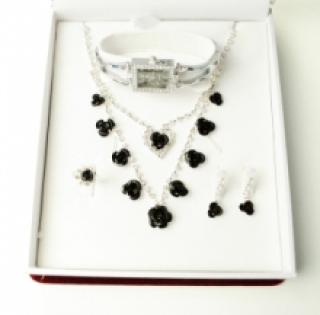 Coffret cadeau contenant une parure bijou et une montre avec strass