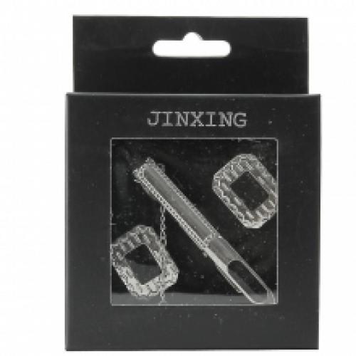 Set composé d’une pince à cravate avec breloque et des boutons de manchette assortis, livré par lot de 12 à mini-pris sur ventegros.fr (1.08 € / Unité). Matière : métal. Couleur argentée. Disponible en taille unique. Pour plus d’informations, contactez notre service client au Tél : 09 74 77 14 80 ou envoyez-nous un mail sur cette adresse : contact@ventegros.fr.