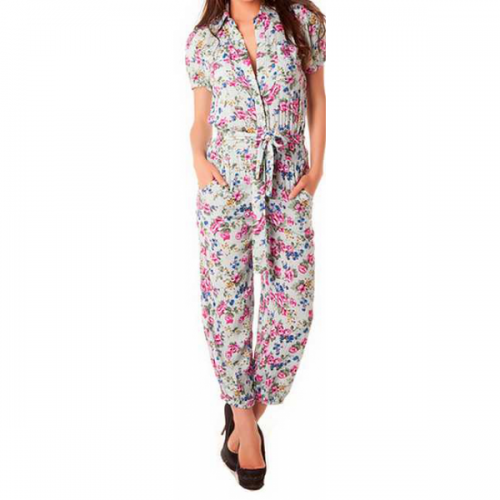 Tres belle combi femme imprimé "fleurie" blanc-bleu avec un elastique au niveau de la taille .