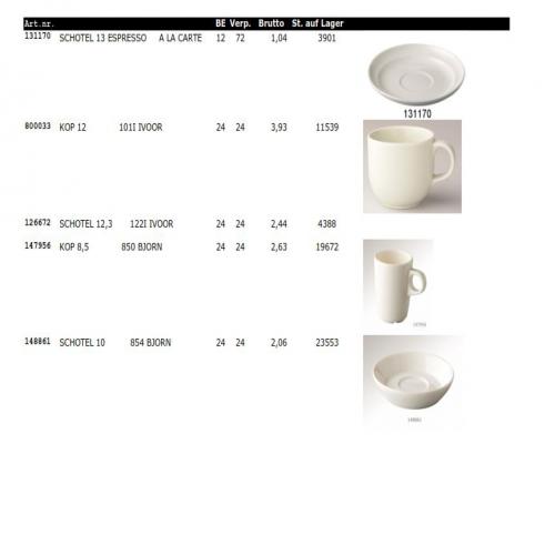 Nous avons à dispositon de lots de tasses + sous-tasses pour 23000EUR les 95000 pièces.