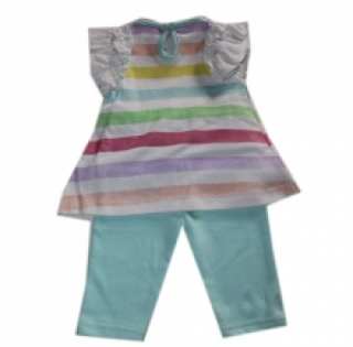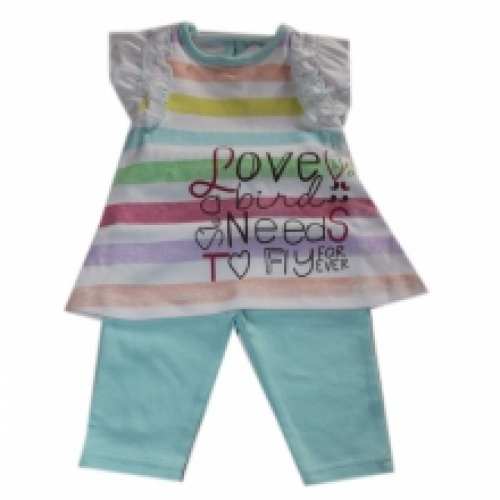 Ensemble deux pièces pur coton pour bébé fille, vendu par lot de 12 à petit prix (7.42 € / Unité). Ensemble composé d’un top à rayures multicolores avec manches volantes et écriture sérigraphies, et leggings assorties. Disponible en couleurs assorties. Tailles assorties : 6-24 mois. Pour plus d’informations, contactez notre service client au Tél : 0974771480 ou envoyez-nous un mail sur cette adresse : contact@ventegros.fr.