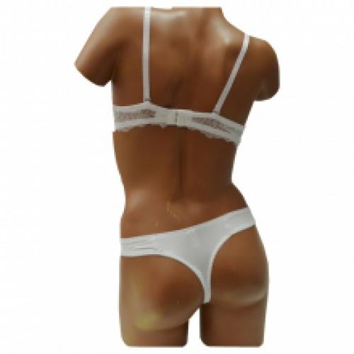 Ensemble lingerie blanche très sexy avec motif zigzag, offert par lot de 6 à prix exceptionnel sur ventegros.fr (4.05 € / Unité). Ensemble composé d’un soutien-gorge avec bonnets B, armatures, bretelles réglables et agrafes au dos. Le tout marié avec un joli string orné d'un petit noeud satiné devant. Tailles assorties : 80B-100B. Pour plus d’informations, contactez notre service client au Tél : 09 74 77 14 80 ou envoyez-nous un mail sur cette adresse : contact@ventegros.fr.
