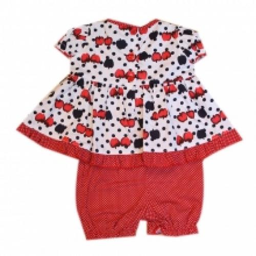 Ensemble pur coton à 2 pièces comportant une splendide robe imprimée pois et tomate ainsi qu'un bloomer à pois, vendu par lot de 12 à mini-prix (4.73 € / Unité). Disponible en couleur unique. Tailles assorties : 0-12 mois. Pour plus d’informations, contactez notre service client au Tél : 0974771480 ou envoyez-nous un mail sur cette adresse : contact@ventegros.fr.