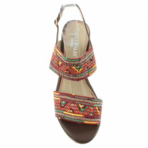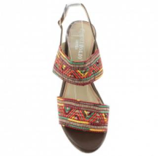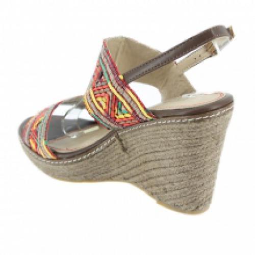 Escarpins compensées rouges avec motif ethnique