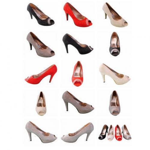 Ne ratez pas la tendance et la mode actuelle en chaussant cette jolie paire d'escarpins avec bout ouvert, plateforme et talon aiguille pour une silhouette sculptée. Escarpins pour femme fabriqués en similicuir et ornés de strass devant. Un prix incroyable à bénéficier pour le lot de 12 paires sur ventegros.fr (9.45 € / Unité). Pointures assorties : 36-41. Disponible en différentes couleurs : noir, blanc, rouge, argent. Pour plus d’informations, contactez notre service client au Tél : 09 74 77 14 80 ou envoyez-nous un mail sur cette adresse : contact@ventegros.fr.